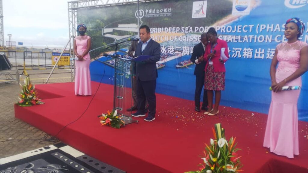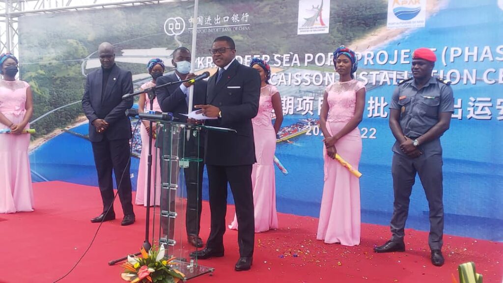 Le Ministre des Transports, Jean Ernest Masséna NGALLÈ BIBÉHÈ, accompagné de son Ministre délégué, Zakariaou NJOYA, a présidé ce samedi 22 octobre 2022 au complexe portuaire de Kribi, la cérémonie de mise en eau du premier caisson de quai de la phase 2 de construction de cette plateforme portuaire.