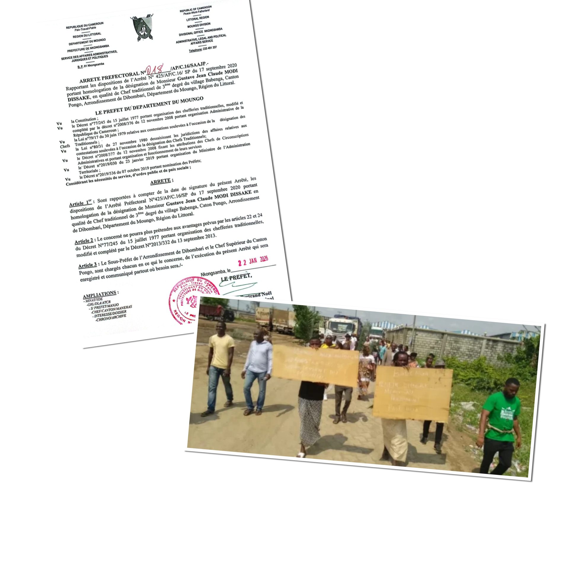 En date du 15 juillet 1977, la loi organisant les chefferies traditionnelles a été promulguée pour encadrer la désignation des chefs traditionnels tout en maintenant l’ordre public et la paix sociale. Ainsi, l’action du sous-préfet de Dibombari ne s’inscrit nullement dans une quelconque démarche d’illégalité ou de favoritisme, mais répond à un arrêté du Préfet du département du Moungo, lequel est parfaitement authentique.